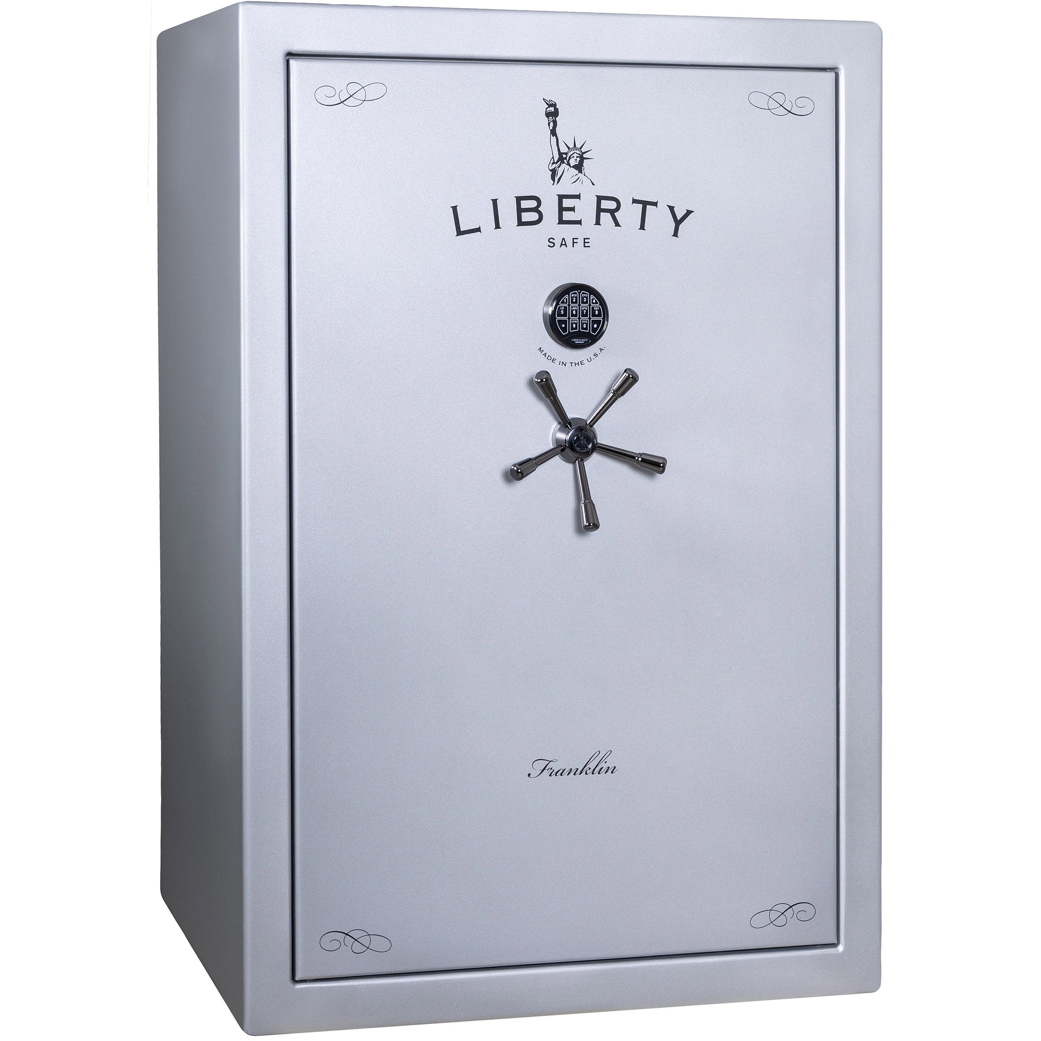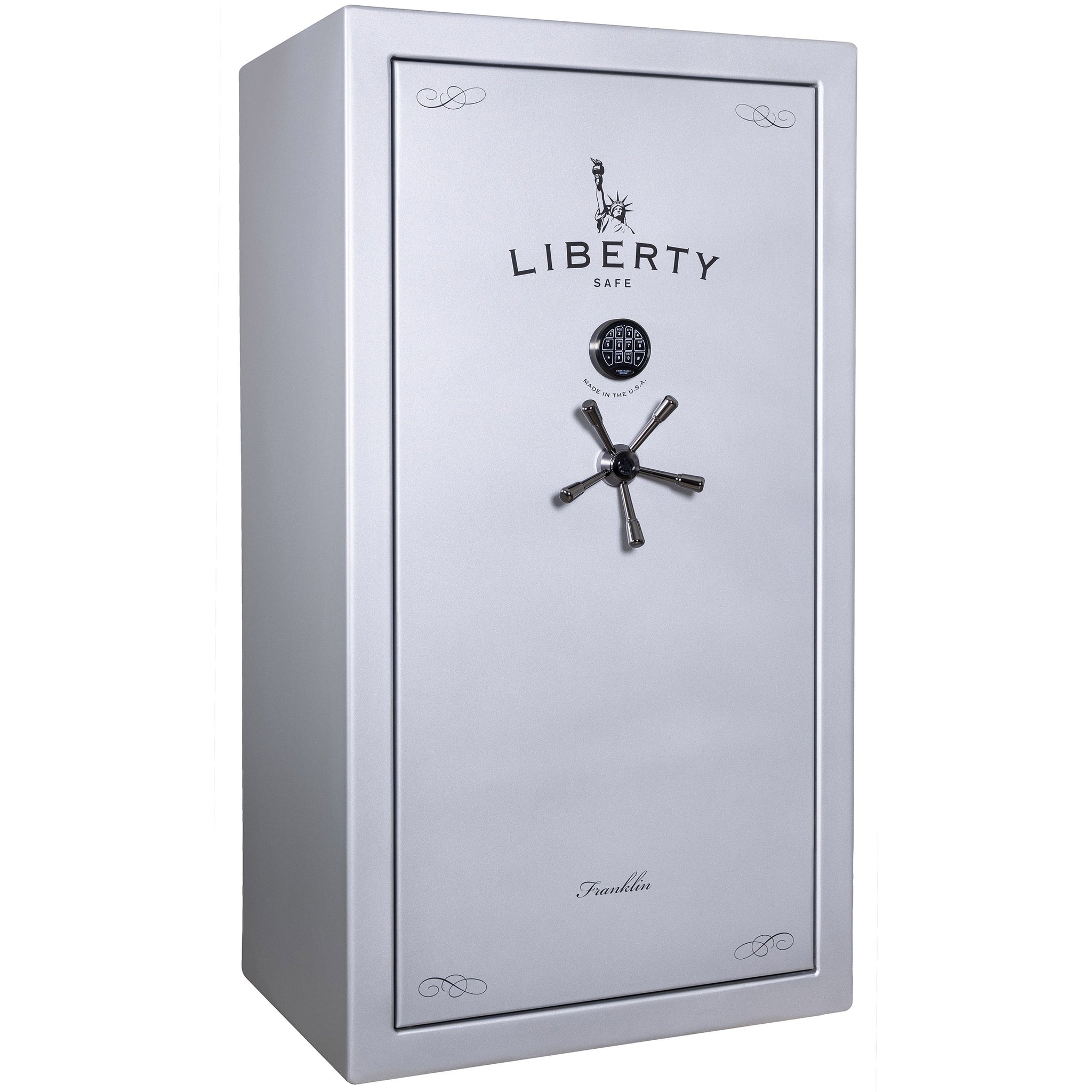 Designed to thwart pry attacks, the Franklin model showcases Liberty’s exclusive Solid State™ locking bars, ensuring enhanced security and peace of mind. With its sleek design and sturdy 11-gauge construction, the Franklin safe seamlessly complements your home decor while serving as a fortress for your treasured belongings.