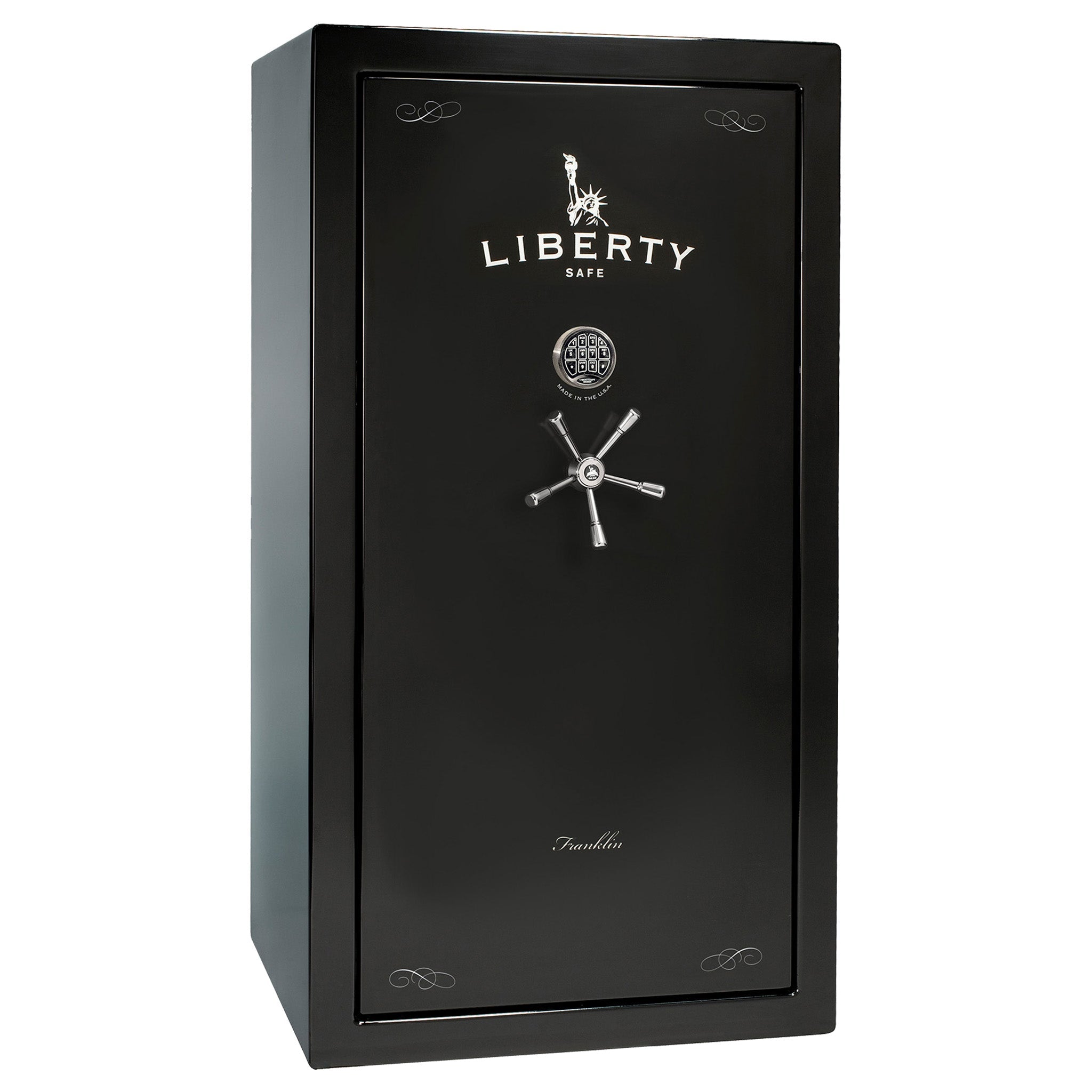 Designed to thwart pry attacks, the Franklin model showcases Liberty’s exclusive Solid State™ locking bars, ensuring enhanced security and peace of mind. With its sleek design and sturdy 11-gauge construction, the Franklin safe seamlessly complements your home decor while serving as a fortress for your treasured belongings.